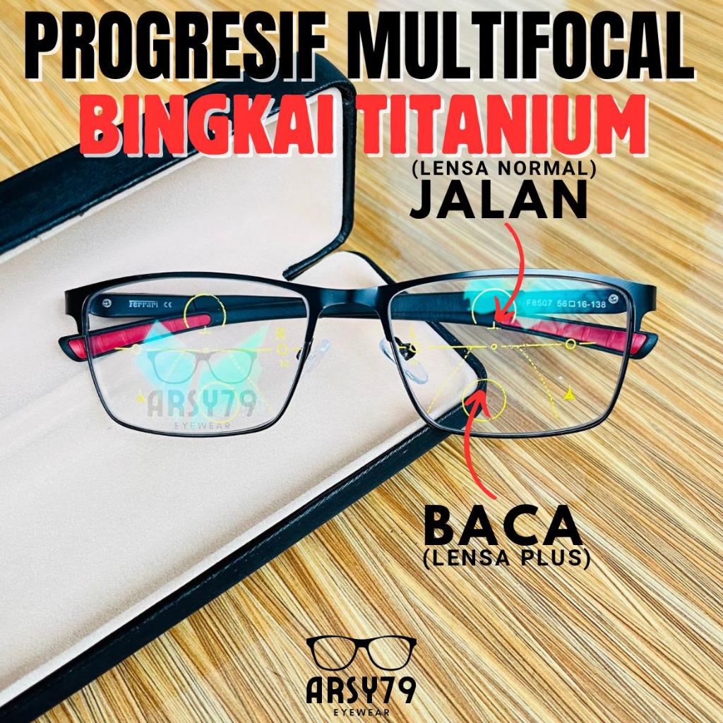 Kacamata Pria Progresif Plus Baca Dan Jalan Lensa Bluecromic Photocromic Frame Titanium