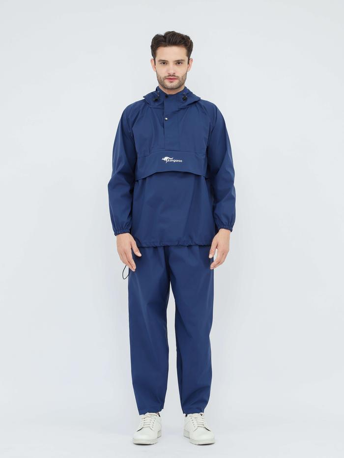 JAKET JAS HUJAN PRIA SETELAN MANTEL SAKU KANGAROO RAINCOAT PREMIUM - NAVY, ALL SIZE