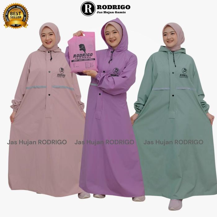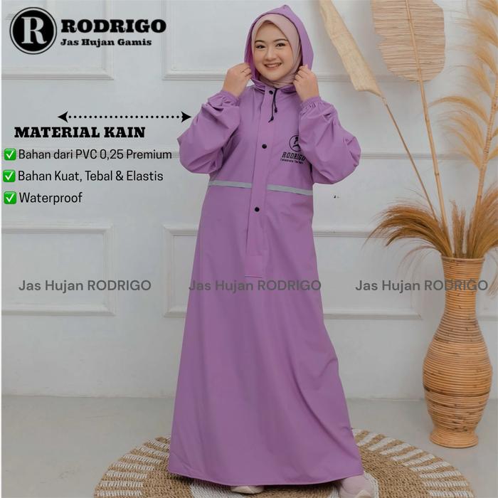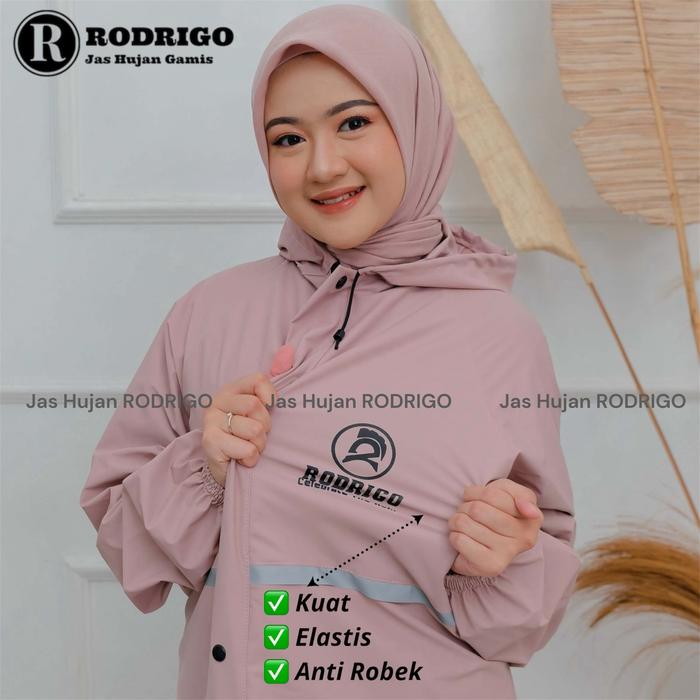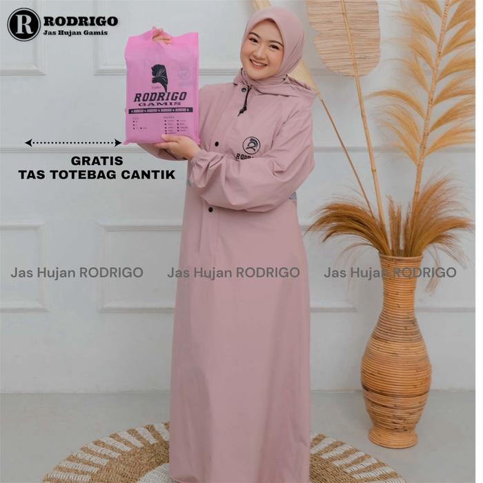 JAS HUJAN MODEL GAMIS RODRIGO PREMIUM DEWASA ANTI REMBES BAHAN TEBAL ELASTIS PVC - DUSTY PINK, M