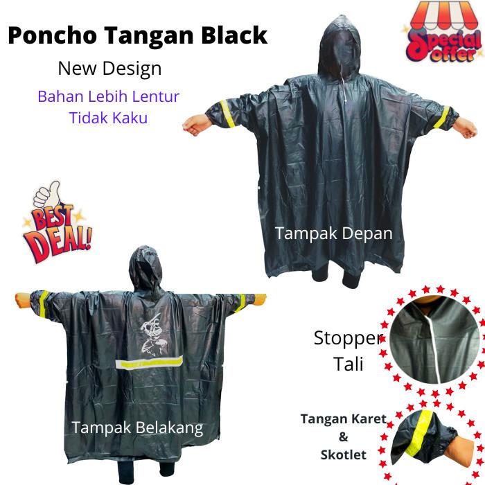MANTEL MANTOL JAS HUJAN PONCO PONCHO KALONG KELELAWAR BONCENGAN LEBAR LENGAN HITAM TEBAL BESAR PVC MAMMOTH BLACK