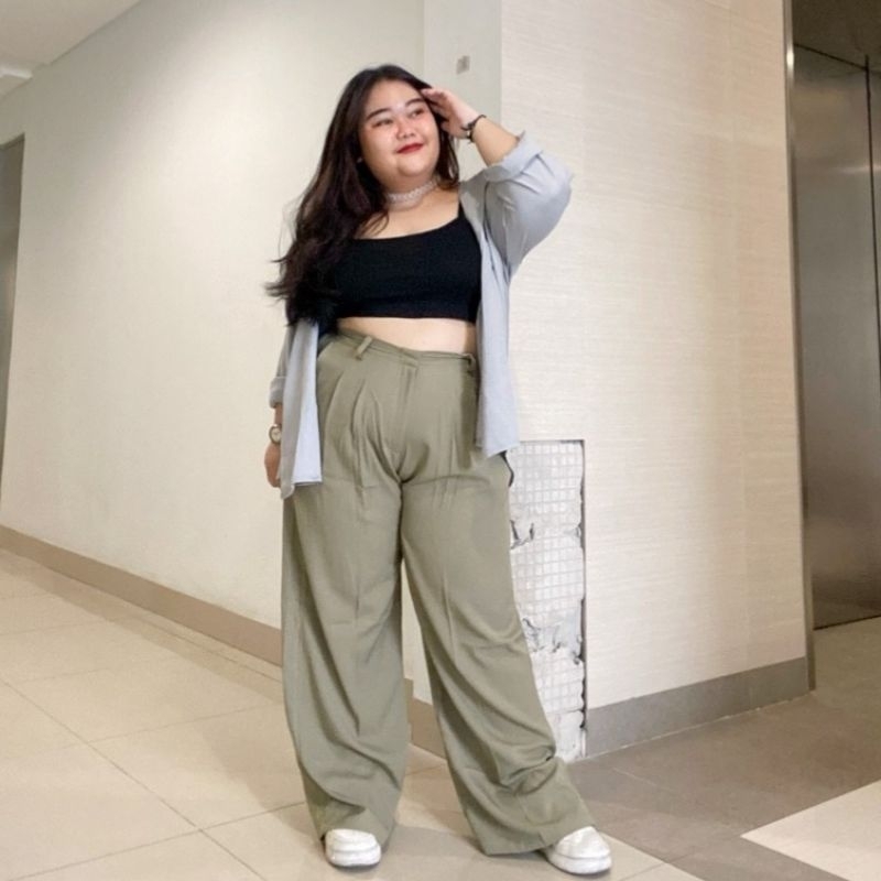 Loose Pants Trousers Jumbo (BIG SIZE) Highwaist Wanita Anti Kusut - Celana Kulot Highwaist Wanita Bahan Jatuh Celan