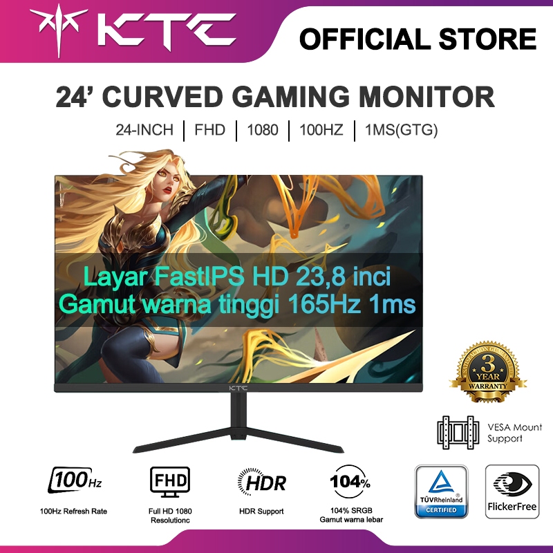 Monitor gaming e-sports KTC 24 inci 1080 165HZ layar F-IPS dapat dihubungkan ke konsol game