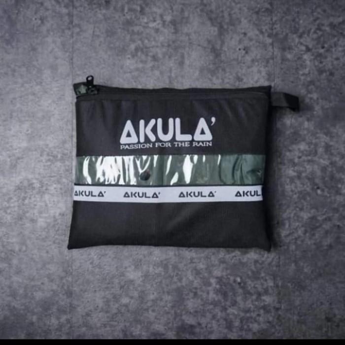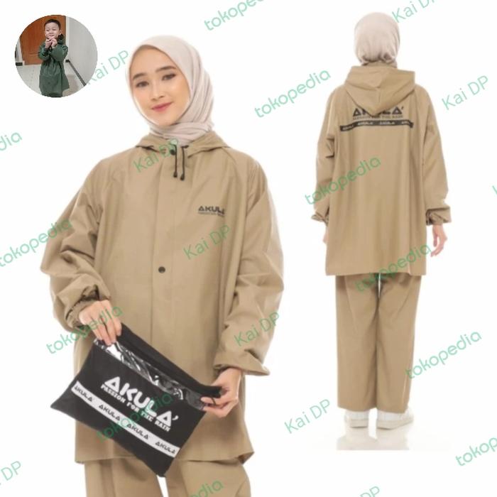 MANTEL JAS HUJAN AKULA SETELAN DEWASA PRIA WANITA KARET PVC PREMIUM - HITAM, L