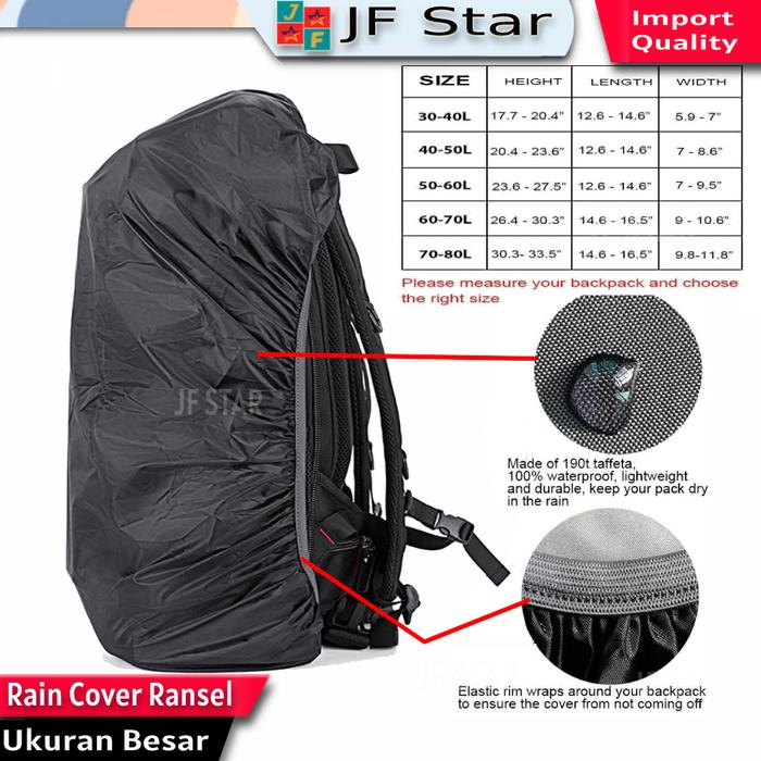 RAIN COAT COVER BAG TAS RANSEL PENUTUP MANTEL ANTI AIR HUJAN BIG SIZE - 35L