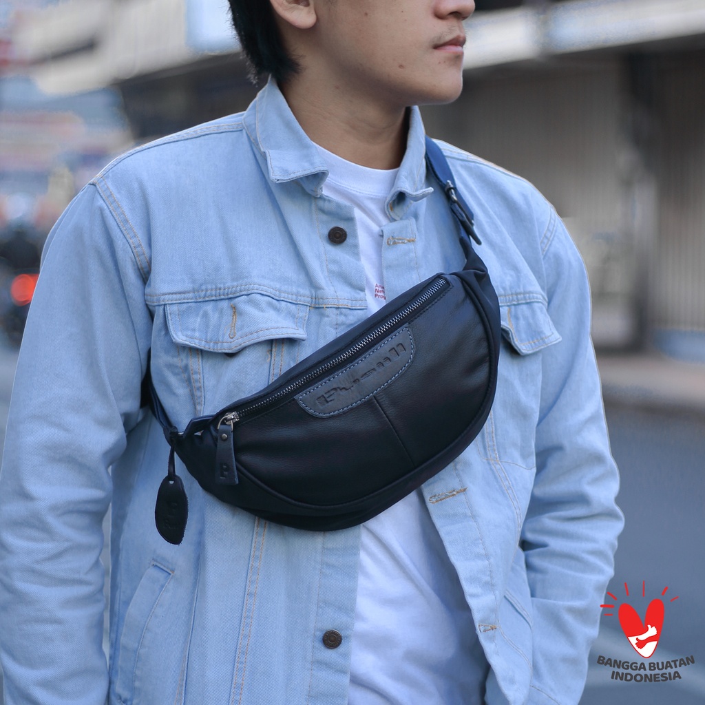 Pusiill-Waist bag Kombinasi Kulit Sapi Asli / Tas Selempang Pria Dan Wanita