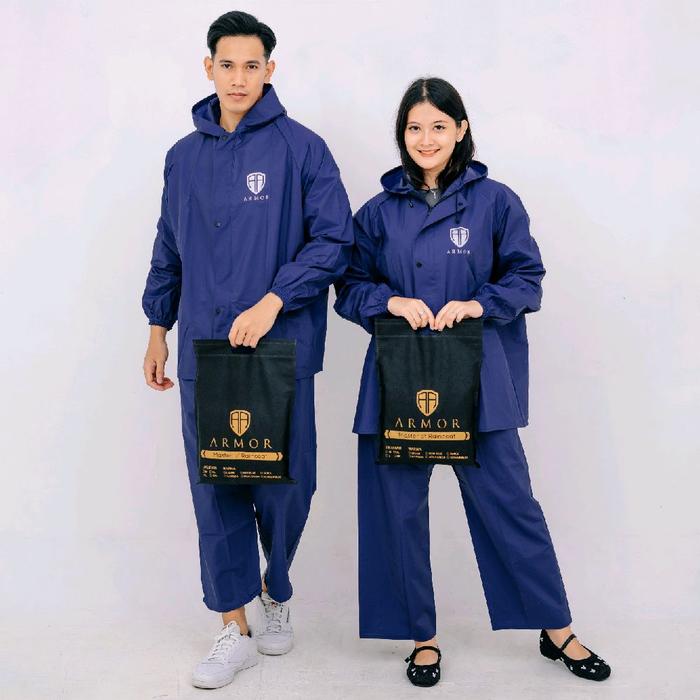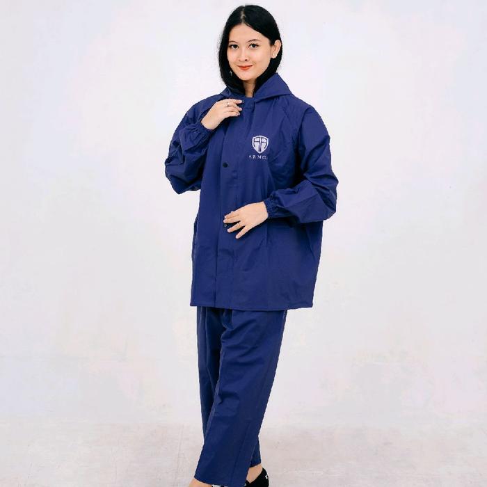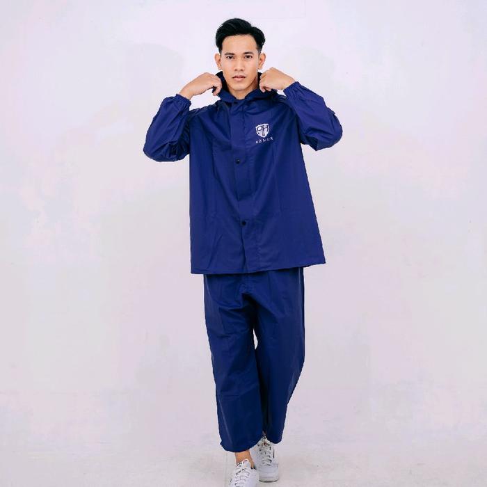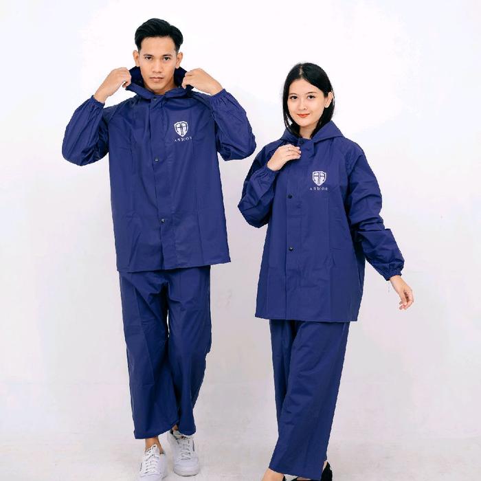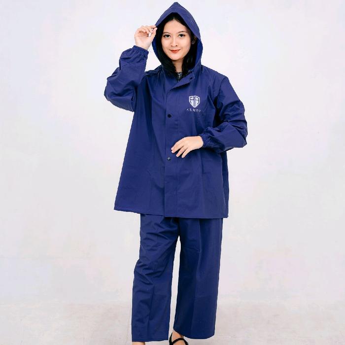JAS HUJAN SETELAN PRIA WANITA DEWASA TEBAL ELASTIS ANTI REMBES - HITAM, L