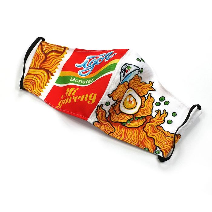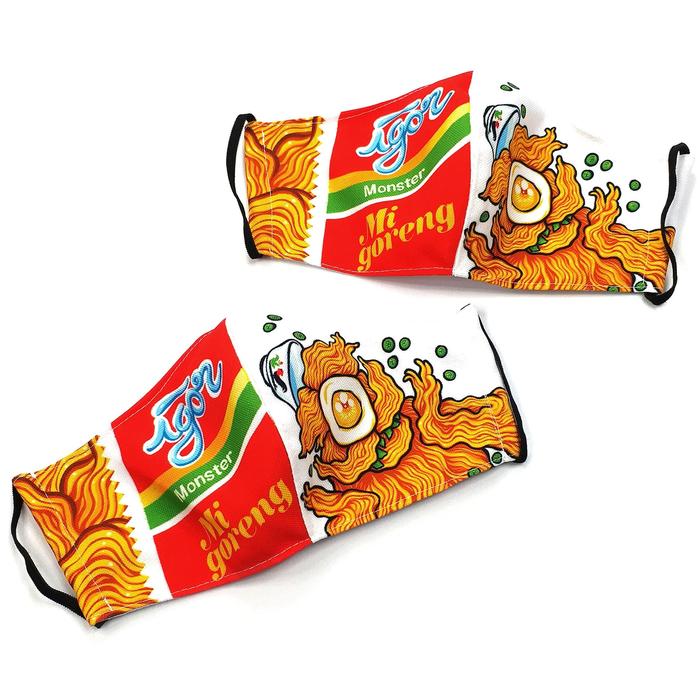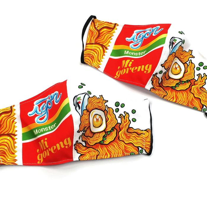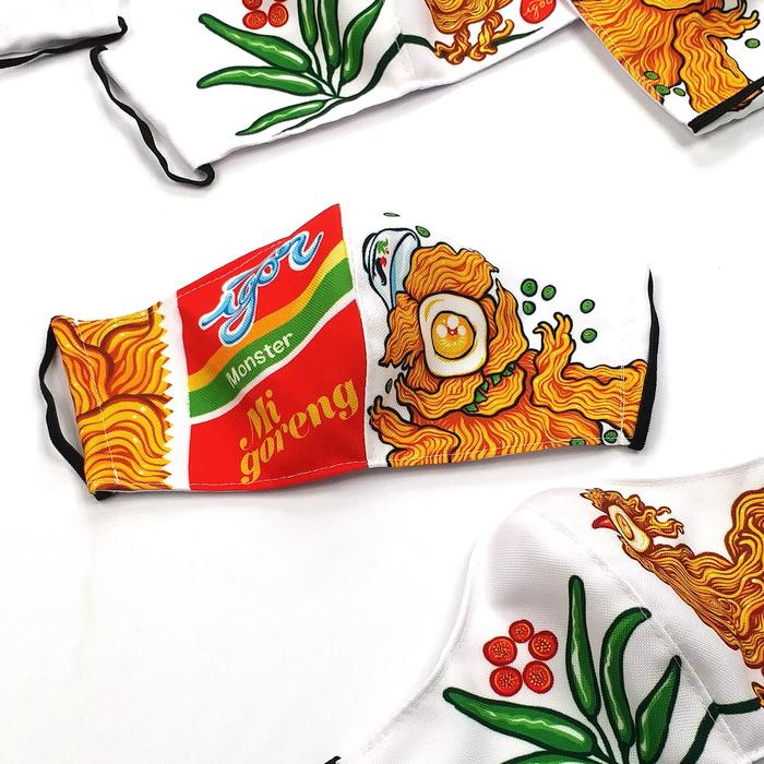 MASKER KAIN ANTI AIR NYAMAN IGORSATUMANGKOK SHRELO MOTIF MIE GORENG INSTANT KREASI DESAINER LOKAL INDONESIA