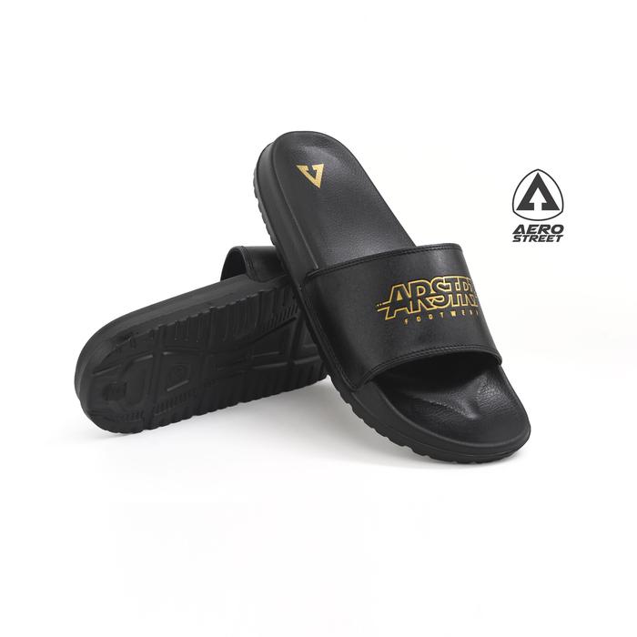AEROSTREET 39-44 ELECTRA HITAM HITAM - SANDAL SENDAL SELOP SLIP ON CASUAL PRIA WANITA AERO STREET BAAAA - 39