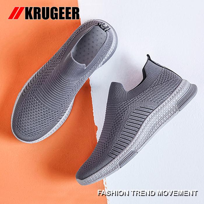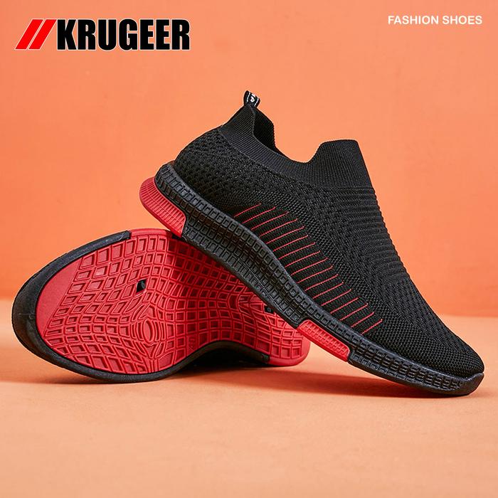KRUGEER SEPATU PRIA SNEAKERS IMPOR SLIP ON KASUAL DAN SPORTY KG-002 - HITAMLIST PUTIH, 44