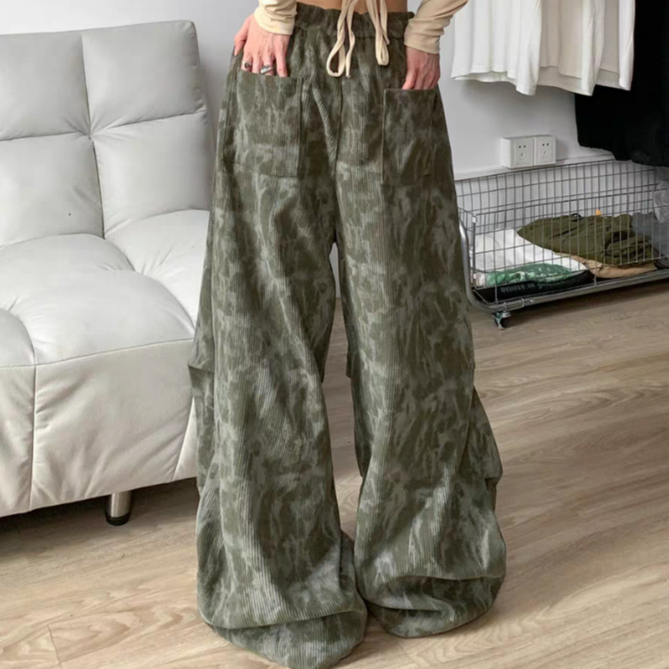 GDTIMA Celana Corduroy Panjang Baggy Kulot Wanita Celana Panjang Casual Pants
