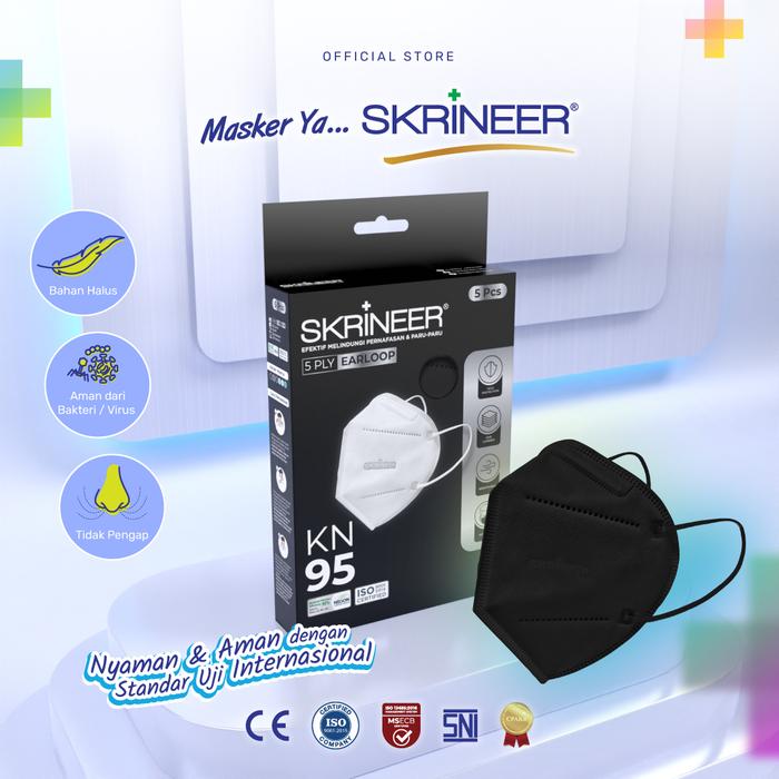 SKRINEER MASKER KN95 5PLY BLACK SIGNATURE EARLOOP BOX ISI 10 PCS