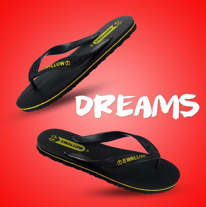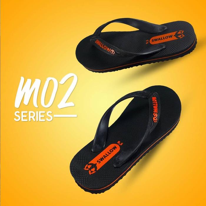 SATUAN SANDAL SENDAL JEPIT PRIA SWALLOW BLACK PEARL HITAM UKURAN BESAR - ORANGE, 9.5