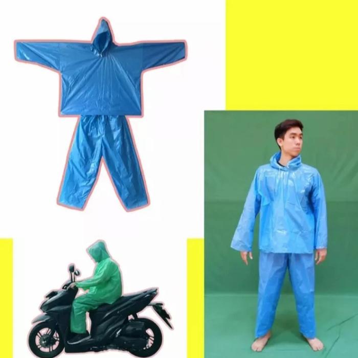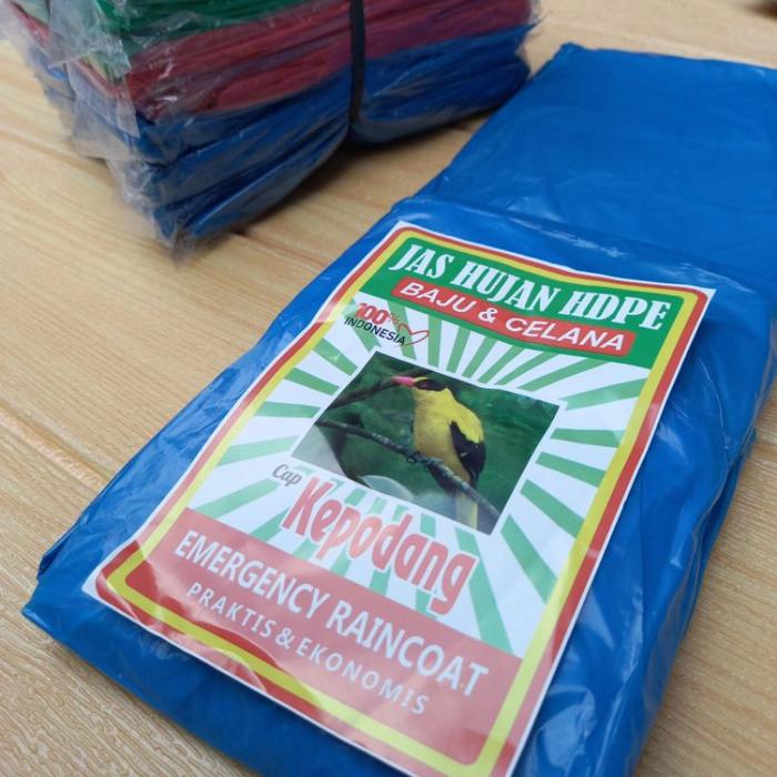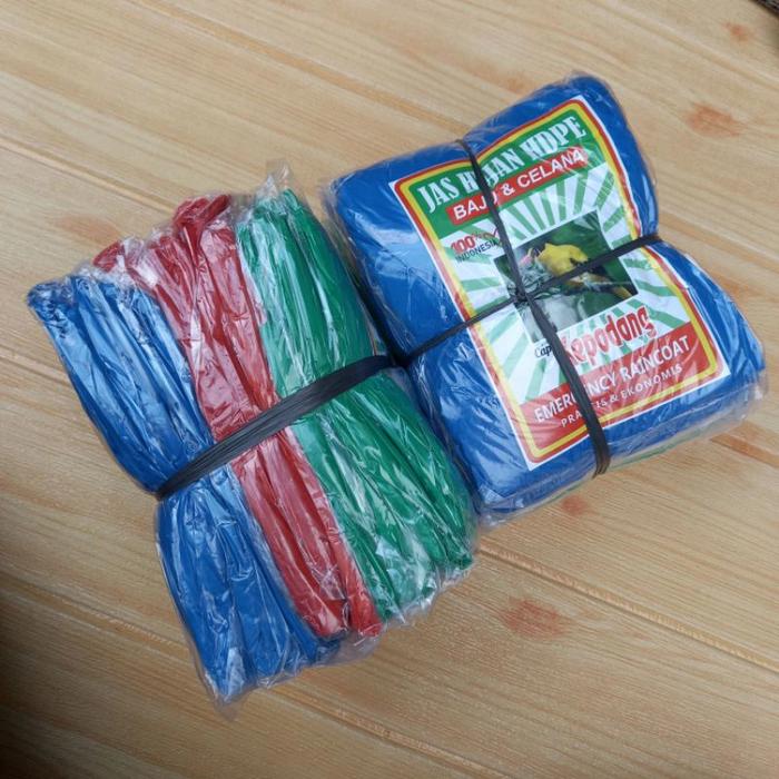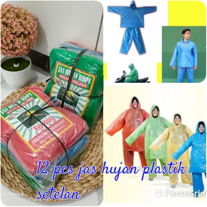 JAS HUJAN PLASTIK HDPE/MANTEL PLASTIK SETELAN BAJU CELANA ISI 12 PCS