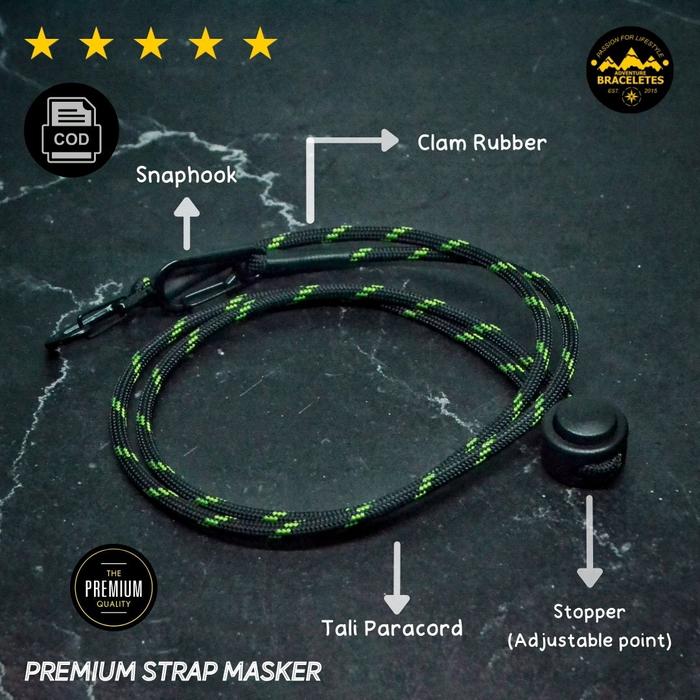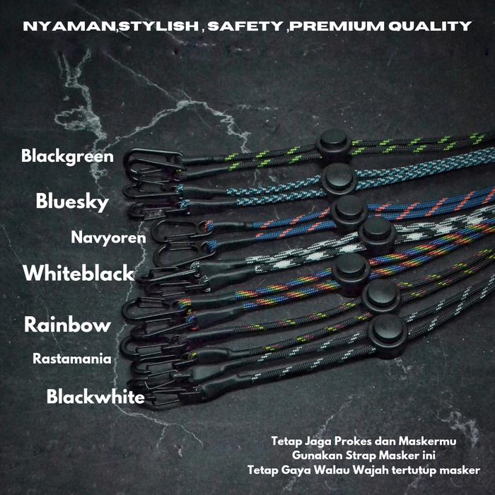 STRAP MASK TALI MASKER PRIA KALUNG PARACORD ADJUSTABLE 2IN1 UNISEX - RASTA