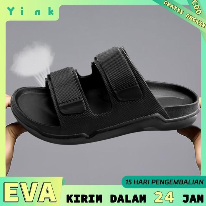YINK SANDAL SELOP PRIA CASUAL MURAH KEREN BAN DUA DEWASA EVA SENDAL COWOK KECE KEKINIAN SLIDE EMPUK KARET DISTRO PREMIUM - HITAM, 39