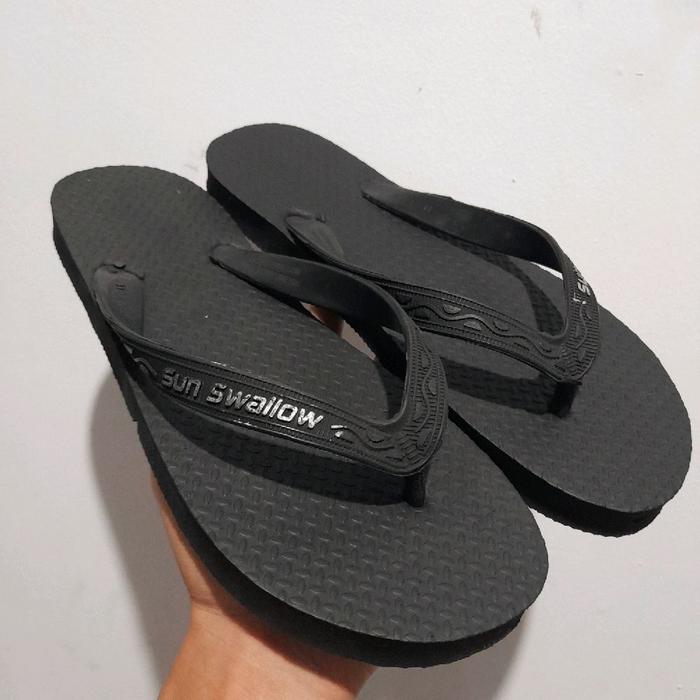 SANDAL JEPIT PRIA SUN SWALLOW FULL BLACK HITAM UKURAN BESAR 39 - 44 - HITAM, 10 (39)