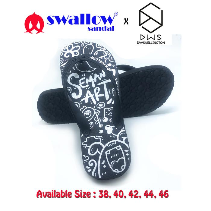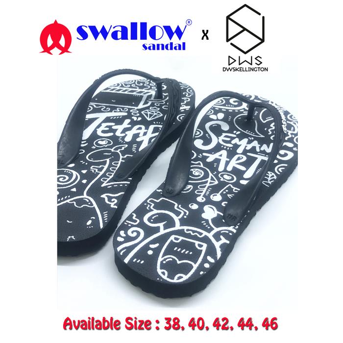 SANDAL SWALLOW X DWSKELLINGTON DOODLE BLACK - HITAM - 9.5 = EU 37-38