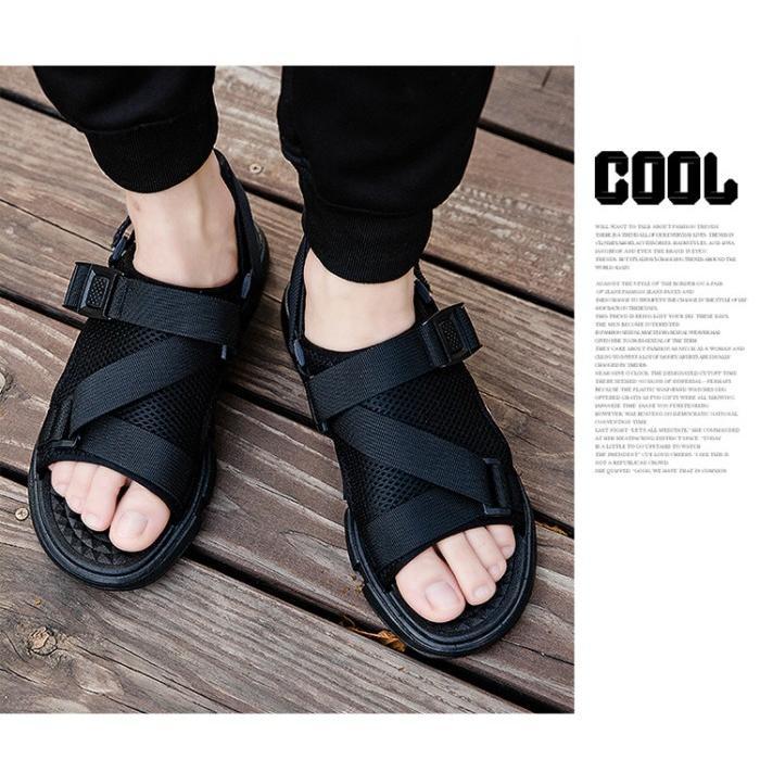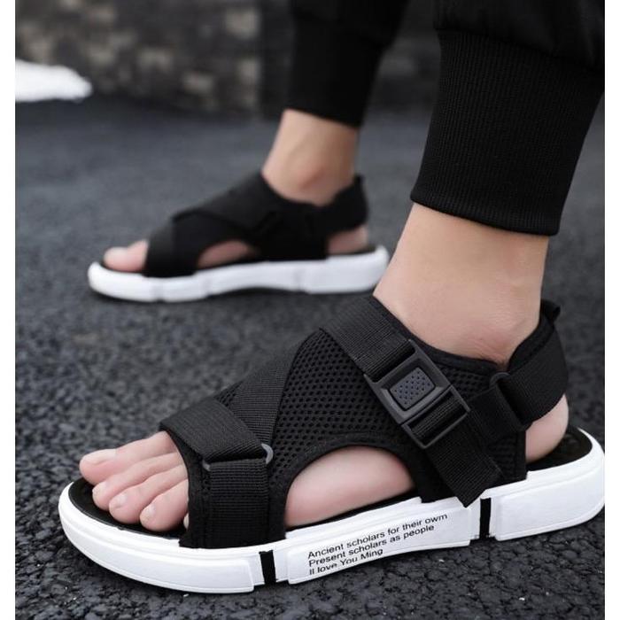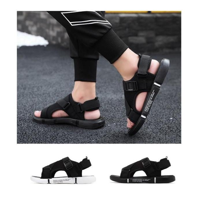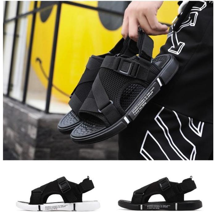 SH37 SANDAL GUNUNG PRIA KEREN EMPUK - ALL BLACK, 44