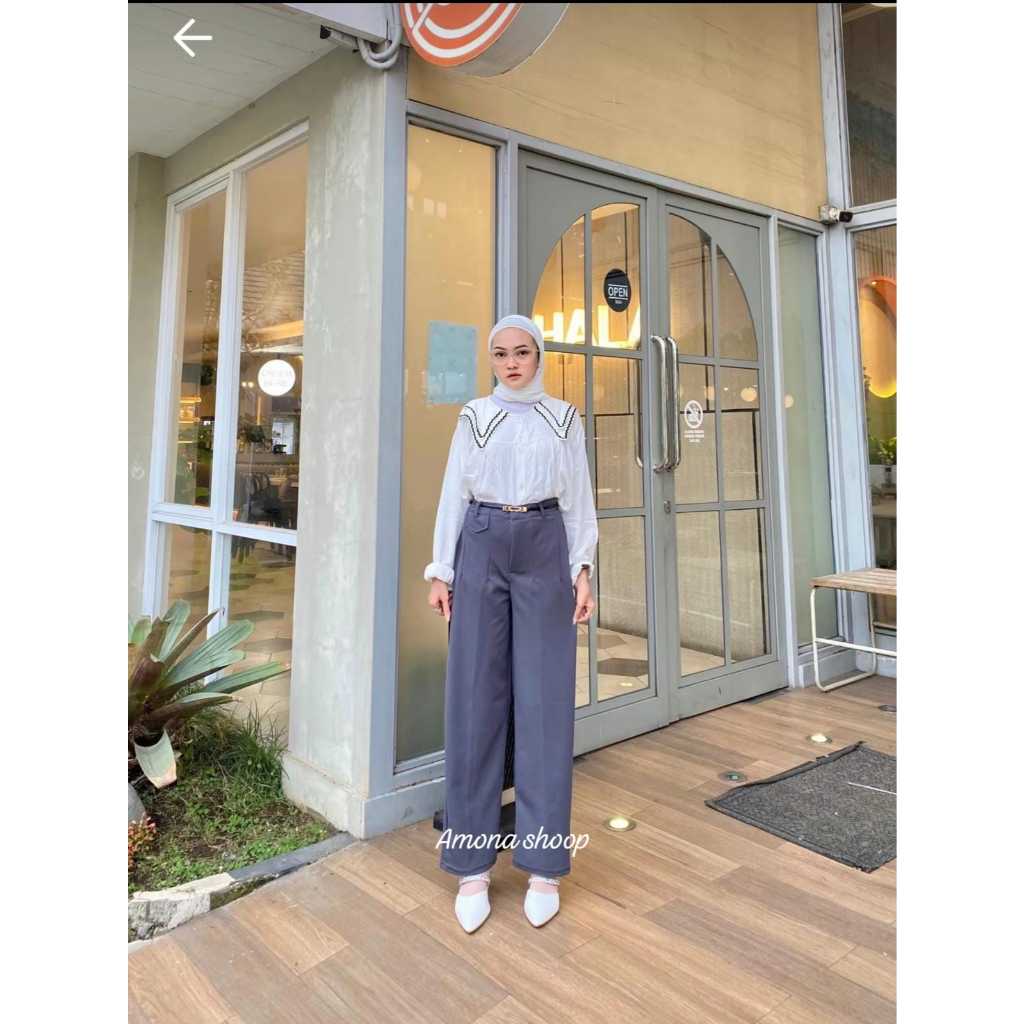 Oro Highwaist Loose Knit Pants - Korean Style with Rapih Stitching Anti kusut