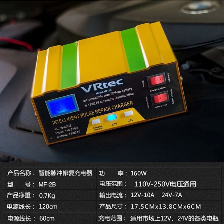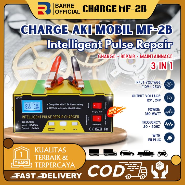 BARRE Charger Aki MF-2B 12V/24V 6-105AH VRtec Smart Battery Charger Mobil Motor