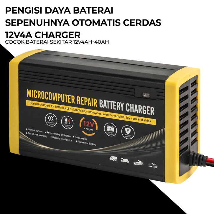 Allefix Smart Charger Pengisi Daya Pintar 12V 4A Aki Motor Smart Intelegent Charger