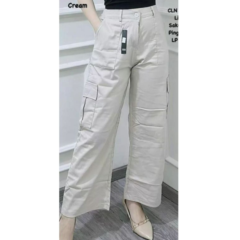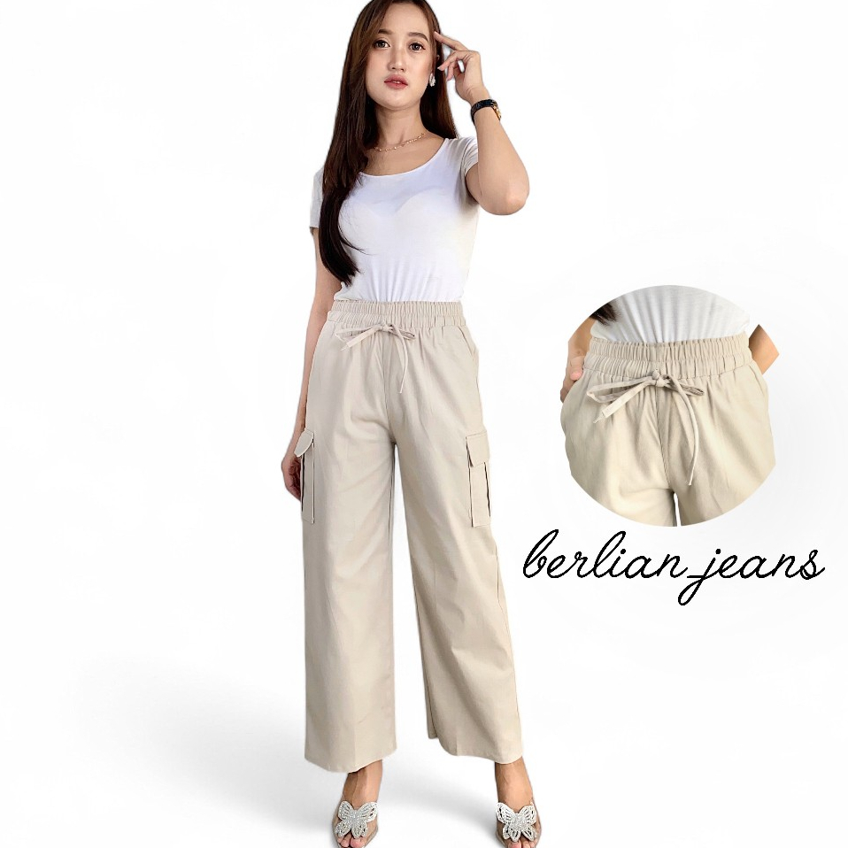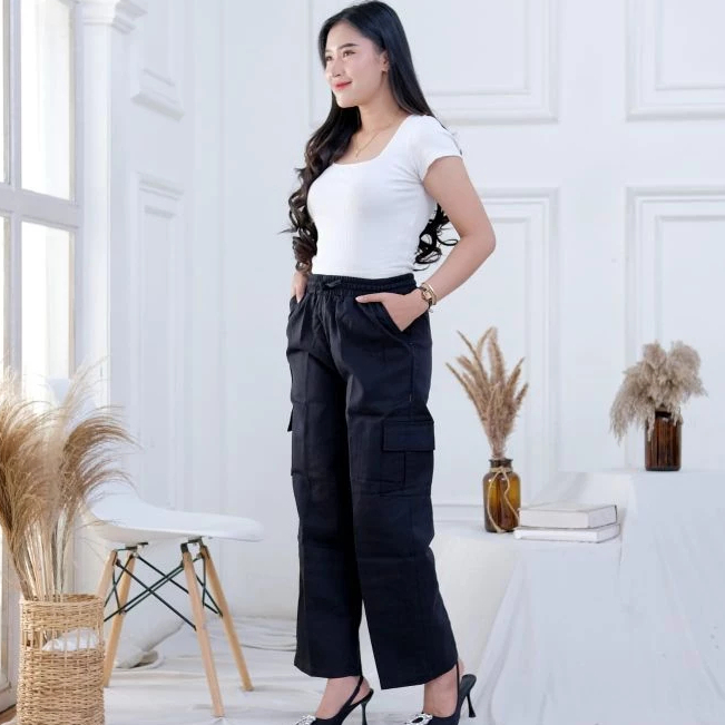 Celana Wanita Kargo/Kulot Bahan Melar dan Tebal Twil Combet Stret -Celana Panjang Korean Terbaru