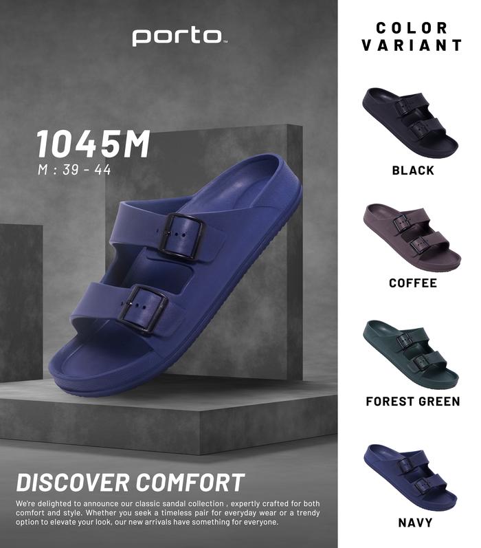 PORTO OFFICIAL 1045M - SANDAL PRIA SENDAL SELOP PREMIUM MODEL TALI SANDAL RUMAH NYAMAN KARET - FOREST GREEN, 39