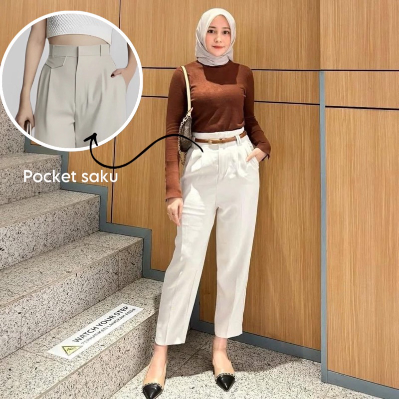 Ara Basic Pants Highwaist Celana Baggy Angkle Pants Celana Kantor Loose Pants