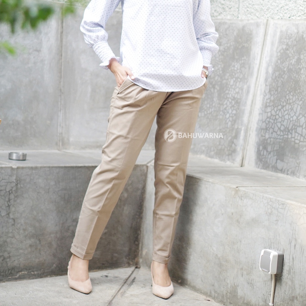 Celana Wanita Panjang kerja Bahan Katun Stretch Tebal