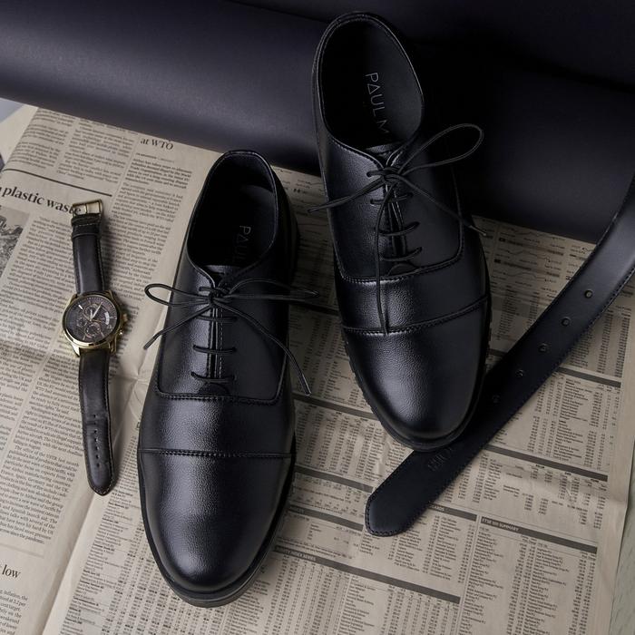 PAULMAY SEPATU FORMAL PRIA MODENA 08 HITAM PANTOFEL SHOES KARET FANTOFEL KERJA - BLACK, 39