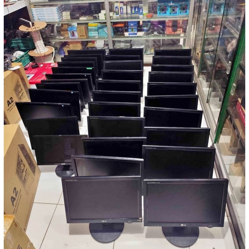 LCD MONITOR 16 INCHI WIDE SCREEN LENGKAP KABEL SIAP PAKAI MULUS ISTIMEWA CUCI GUDANG MURAH LEBAY