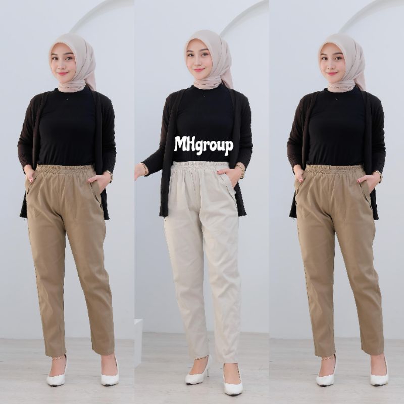 Kino Basic Pants Celana Baggy Pants Wanita Full Karet Celana katun Celana Chino Stretch MH