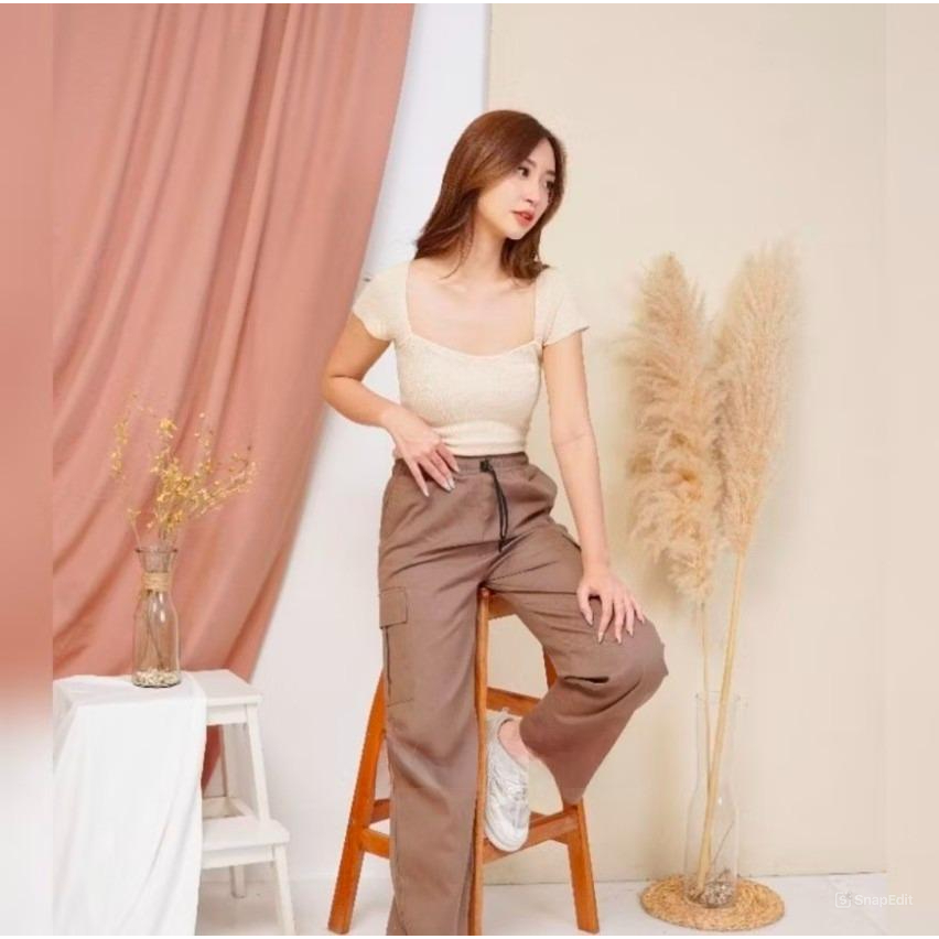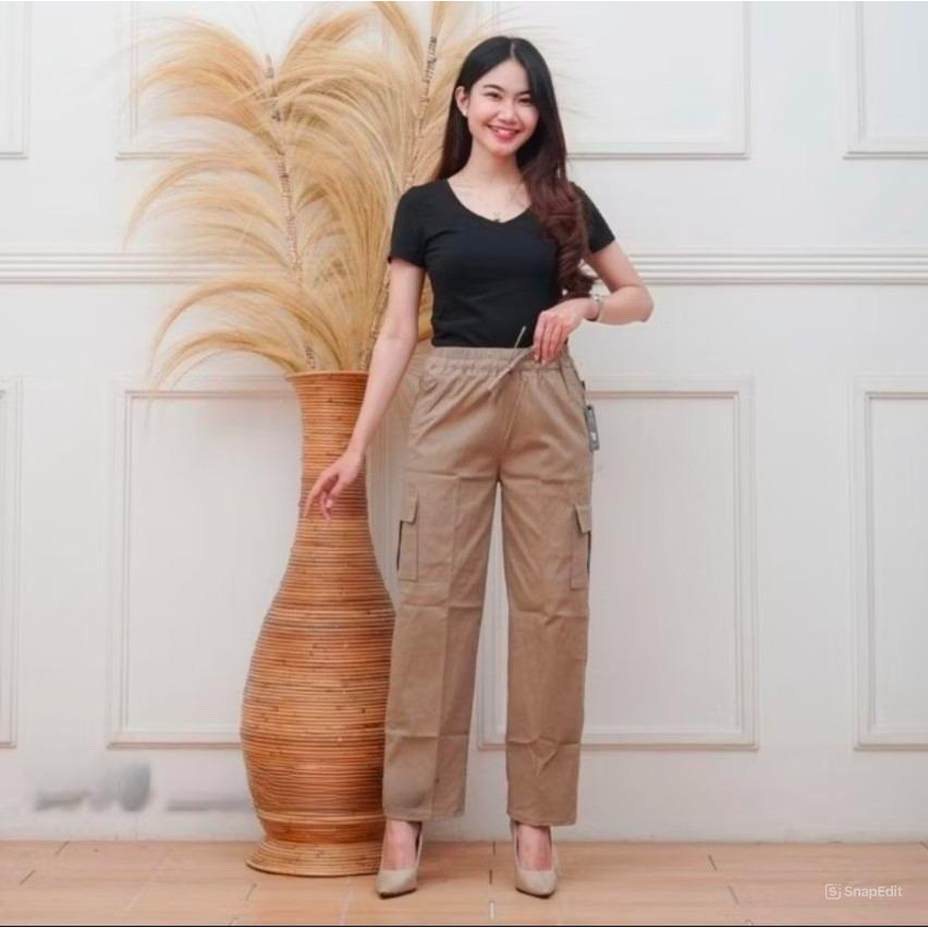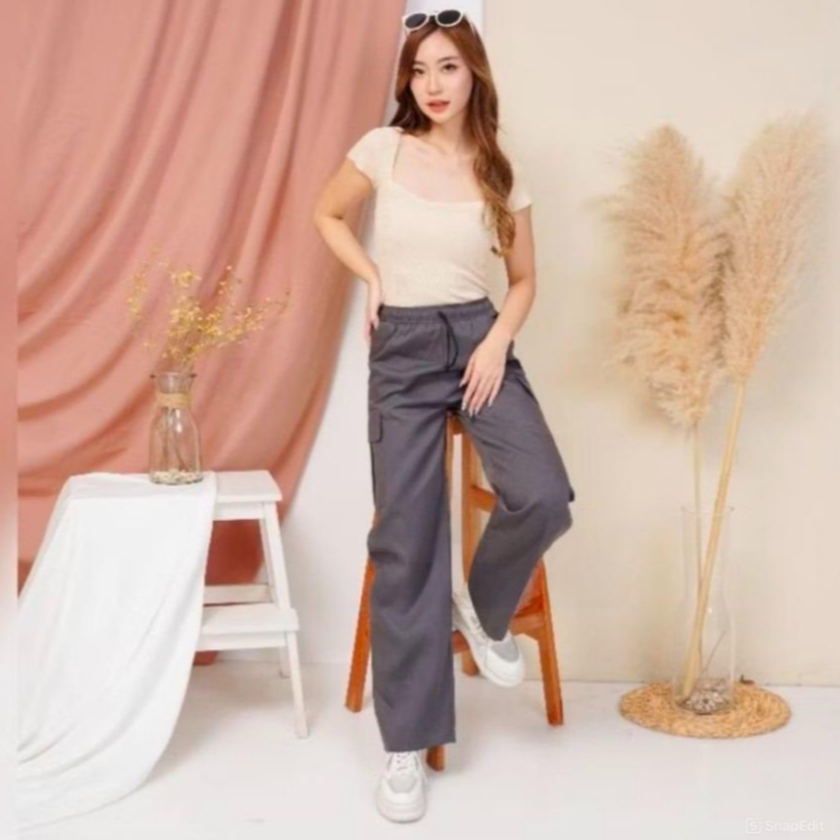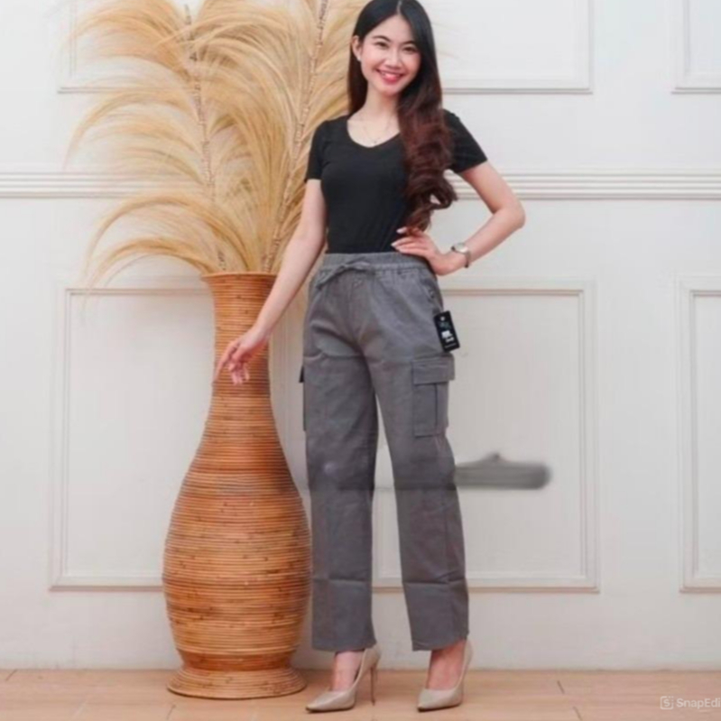 Celana Cargo Highwaist Pants wanita Cargo Premium bahan Twill Combed