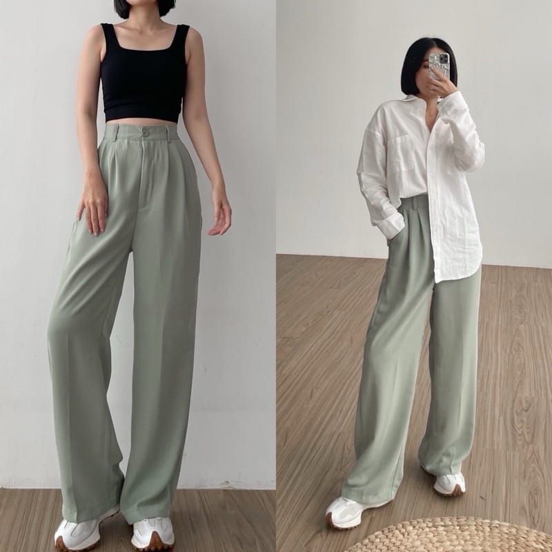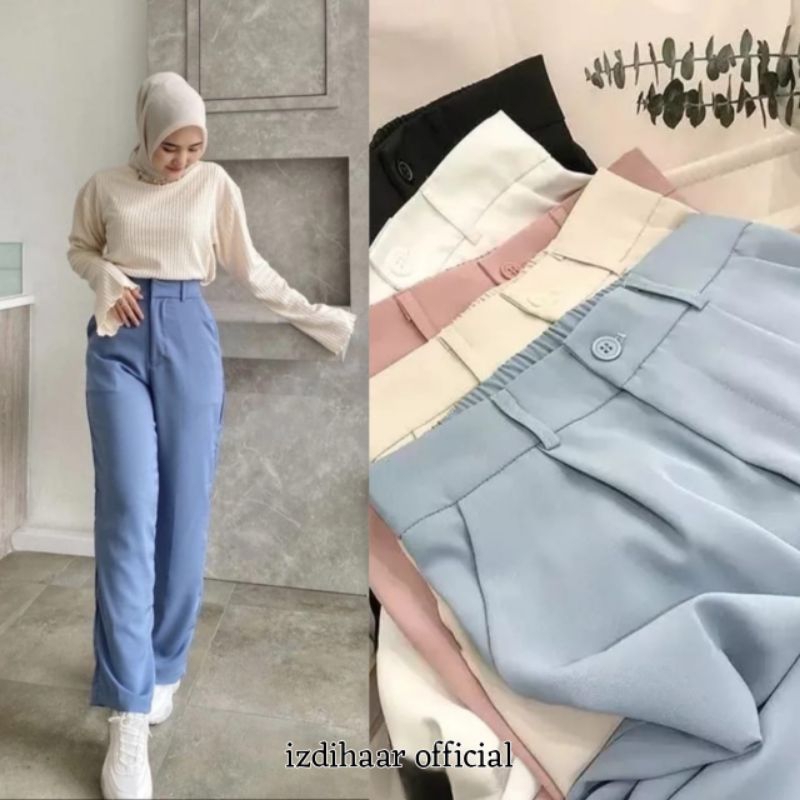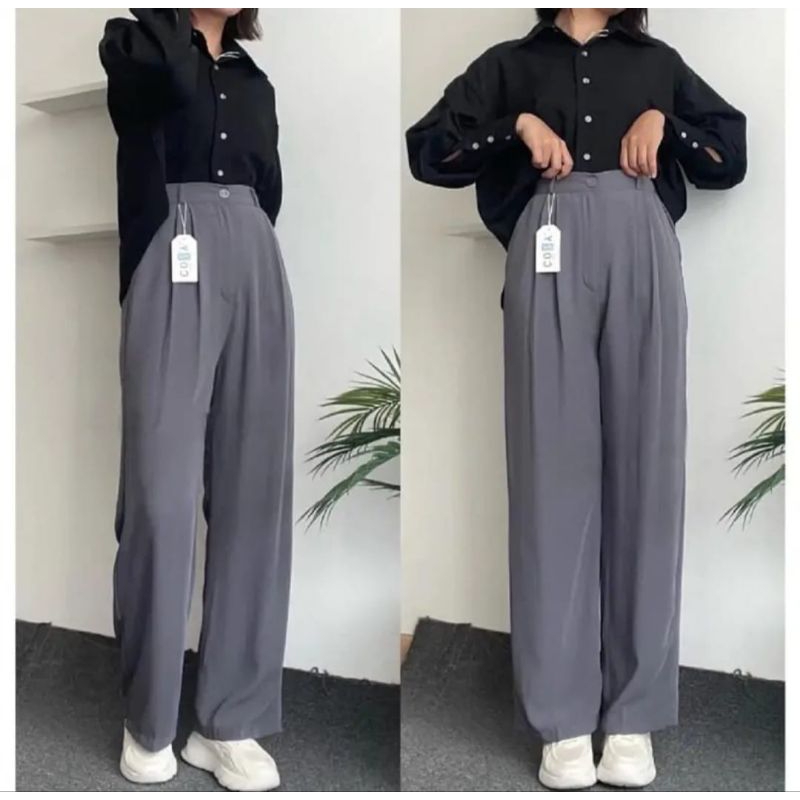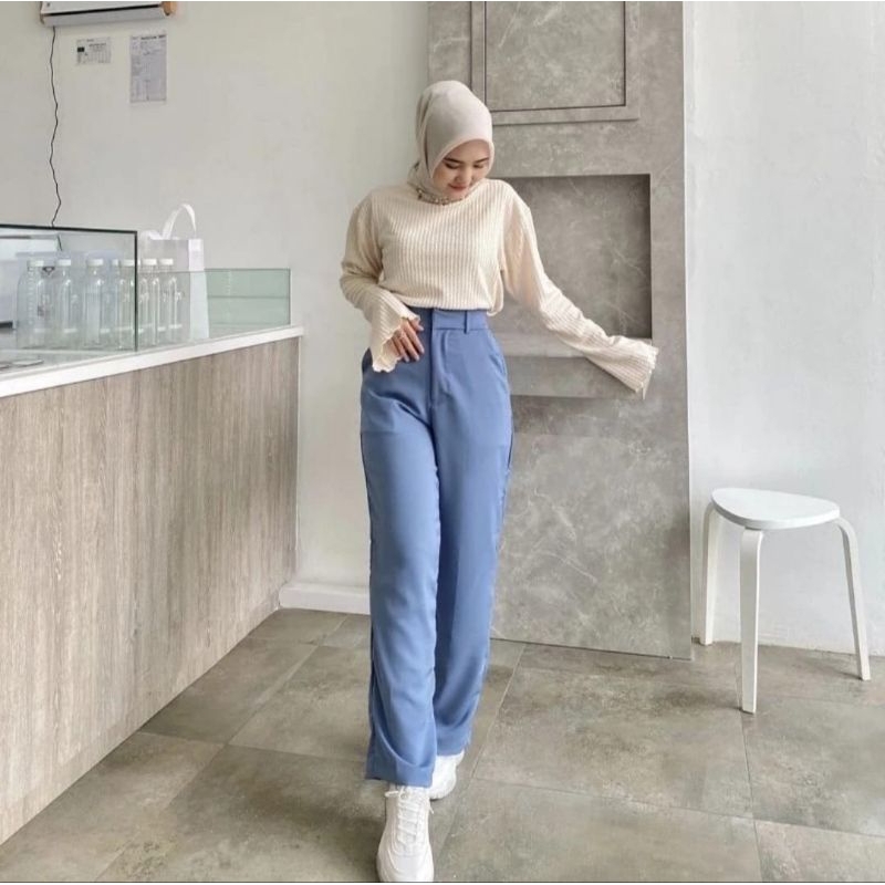 celana wanita kekinian celana wanita loose pants highwaiat trousers celana wanita anti kusut celana wanita terbaru