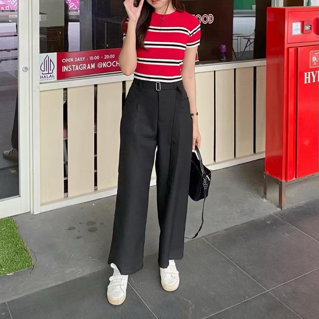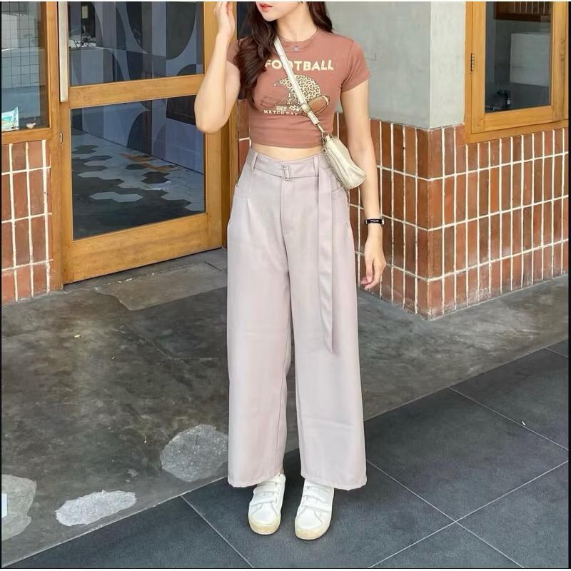 Celana Highwaist Trousers Loose Pants - Celana Kulot Kantor Formal Anti Kusut Casual