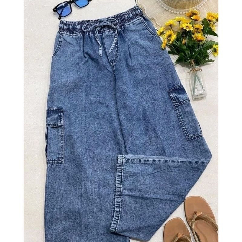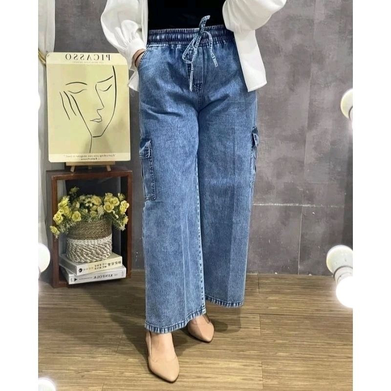Celana Kulot Cargo Cewek Bahan Jeans Trendy Murah