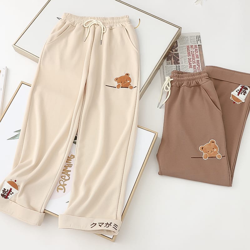 Vallina Outfit - Boba Pants Jogger Cullote Fleece Tebal Bawahan Celana Kulot Highwaist Korean Style