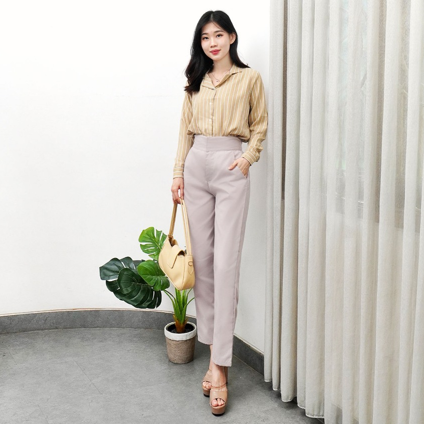 Celana Highwaist Baggy Pants Wanita / Celana Panjang Bahan Katun Premium Wanita Baby Ankle Pants