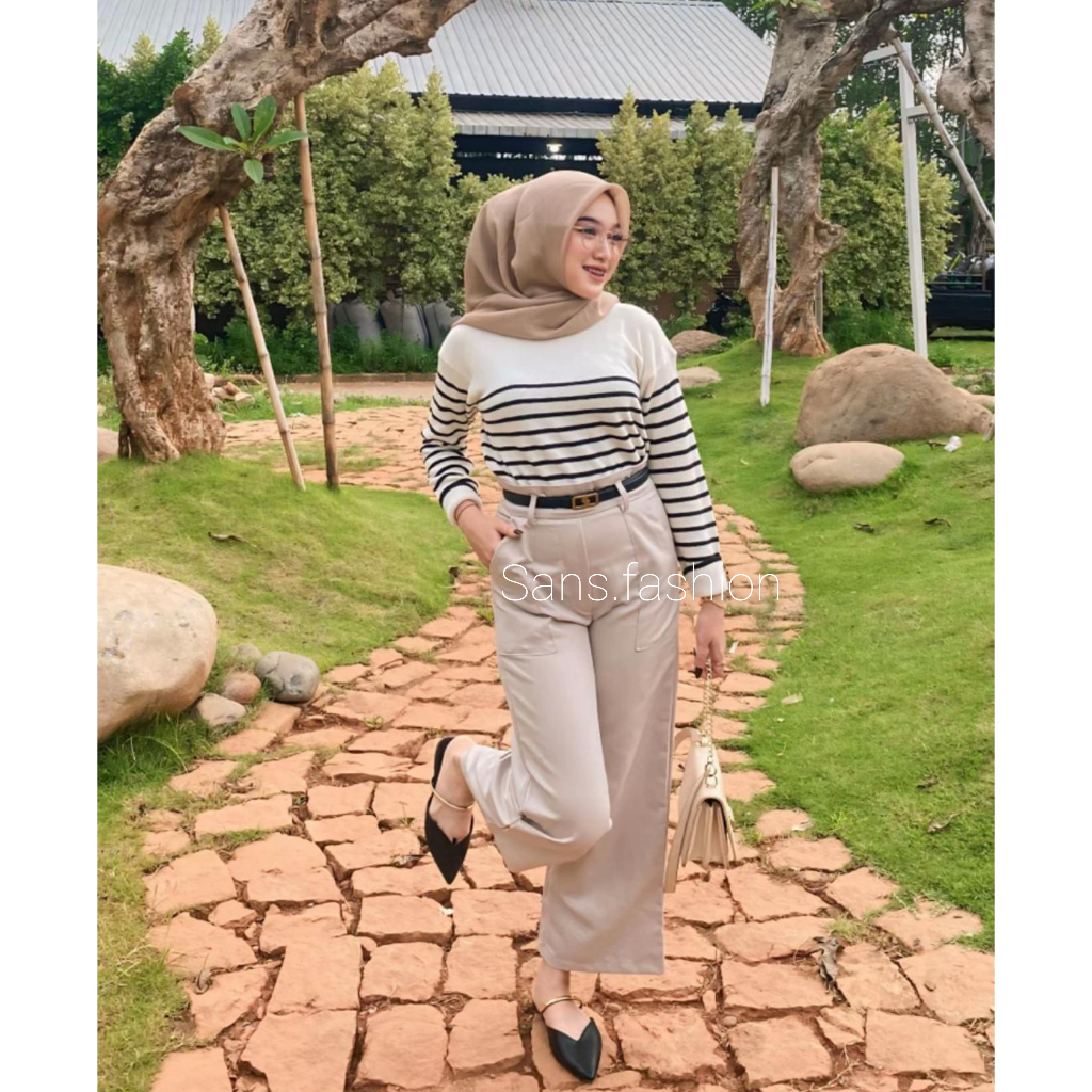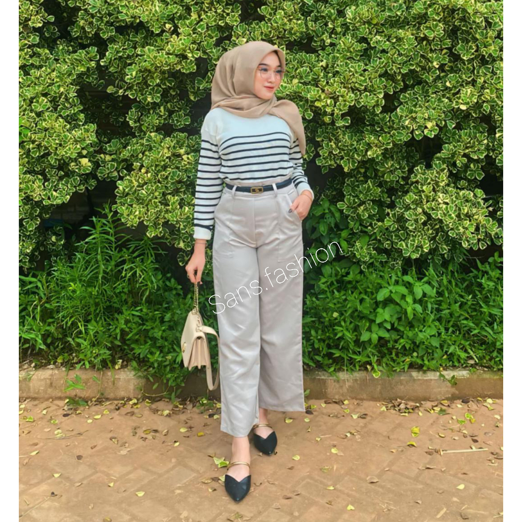 Sans - Diora Highwaist Pants / Kulot Loose Pants Wanita