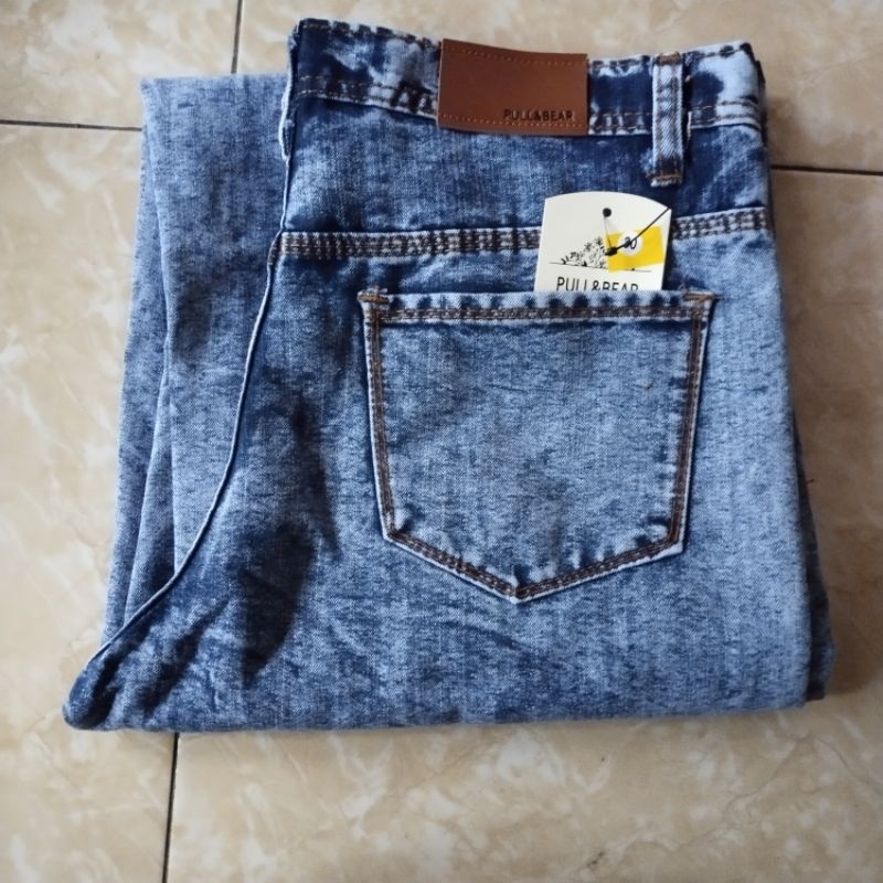 Celana Kulot Jeans Rawis Snow Blue High waist Sobek Korean Style
