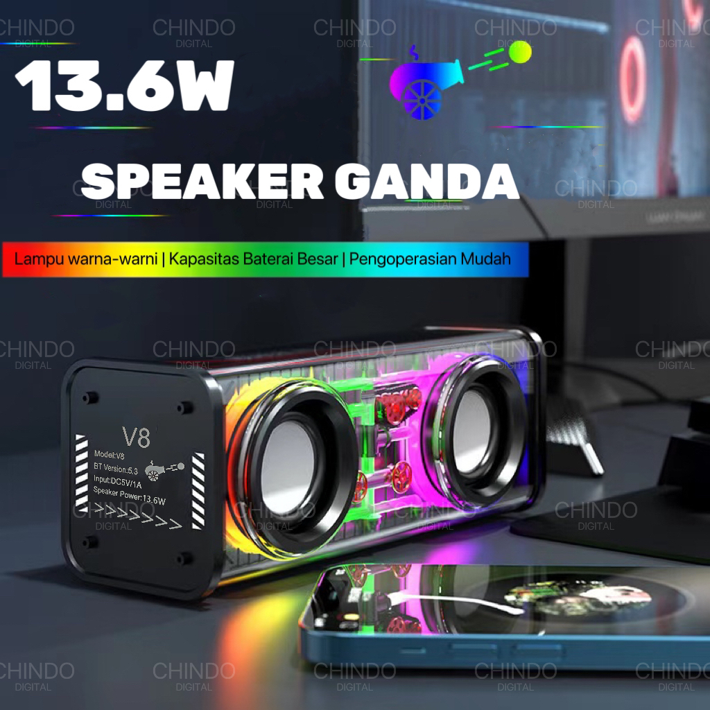 [Mall] SPEAKER V8 BLUETOOTH DOUBLE SPEAKER TRANSPARANT SUBWOOFER 13W MUSIC SPEAKER RGB LED LIGHT MECHA SPEKER