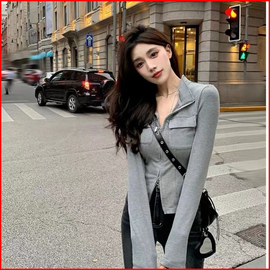 Atasan Lengan Panjang Ziper Pas Body Wanita Korea Stylish M696