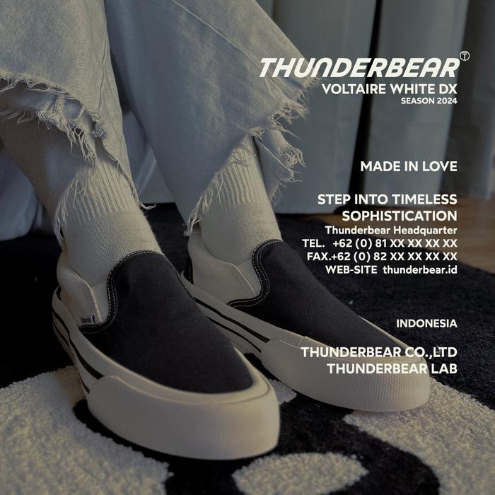 SEPATU THUNDERBEAR - SLIP ON VOLTAIRE WHITE DX CANVAS FLAT KASUAL SHOES PRIA SNEAKERS - 37