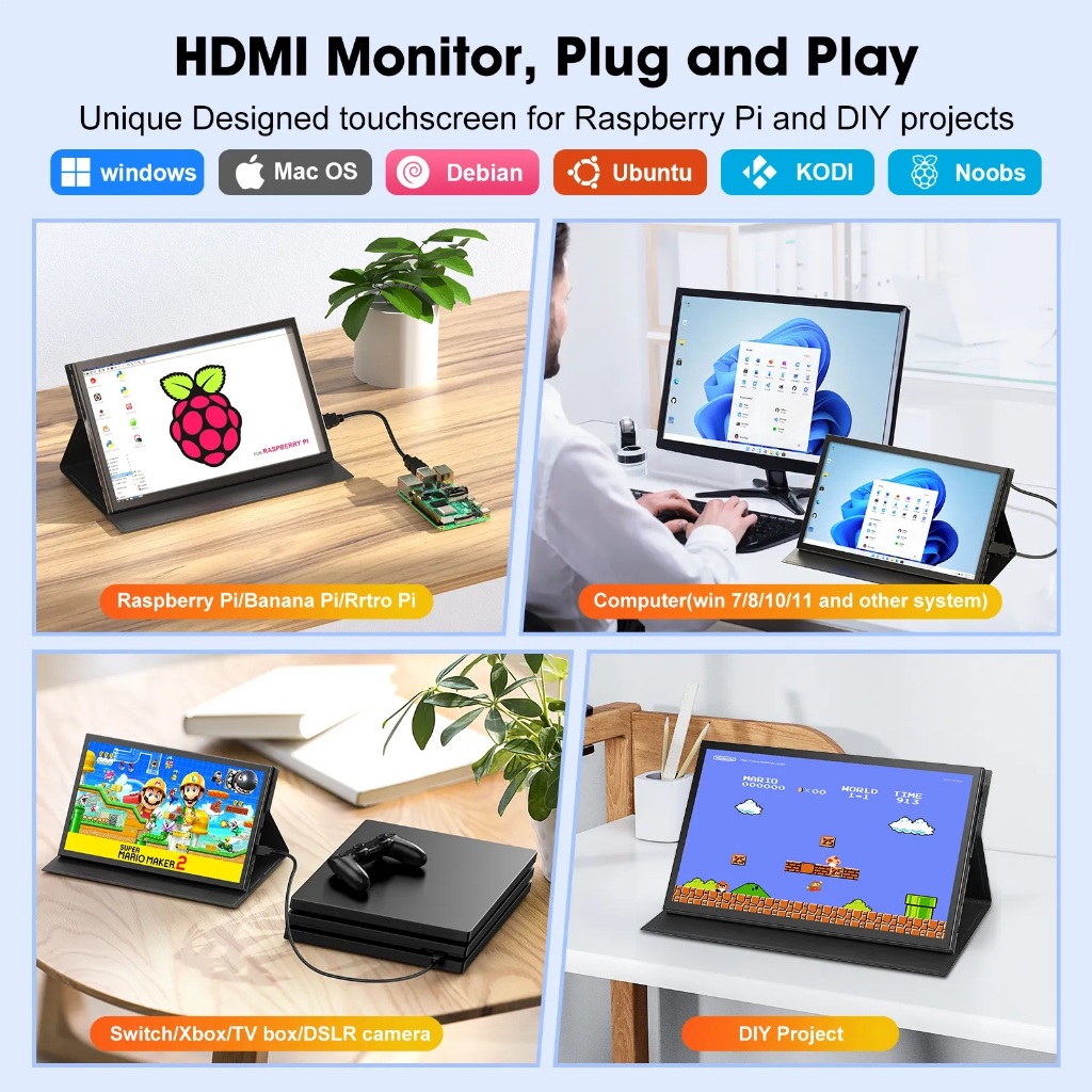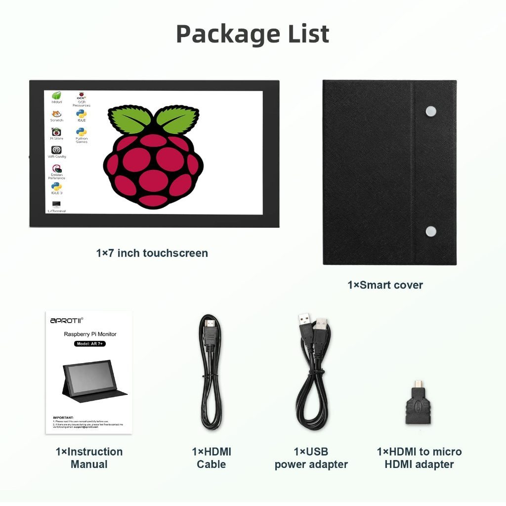(stok siap) Layar Raspberry Pi, Monitor Portabel APROTII 7 inci/10 inci 1024x600 IPS, Rasio aspek 16:9 Layar Sentuh