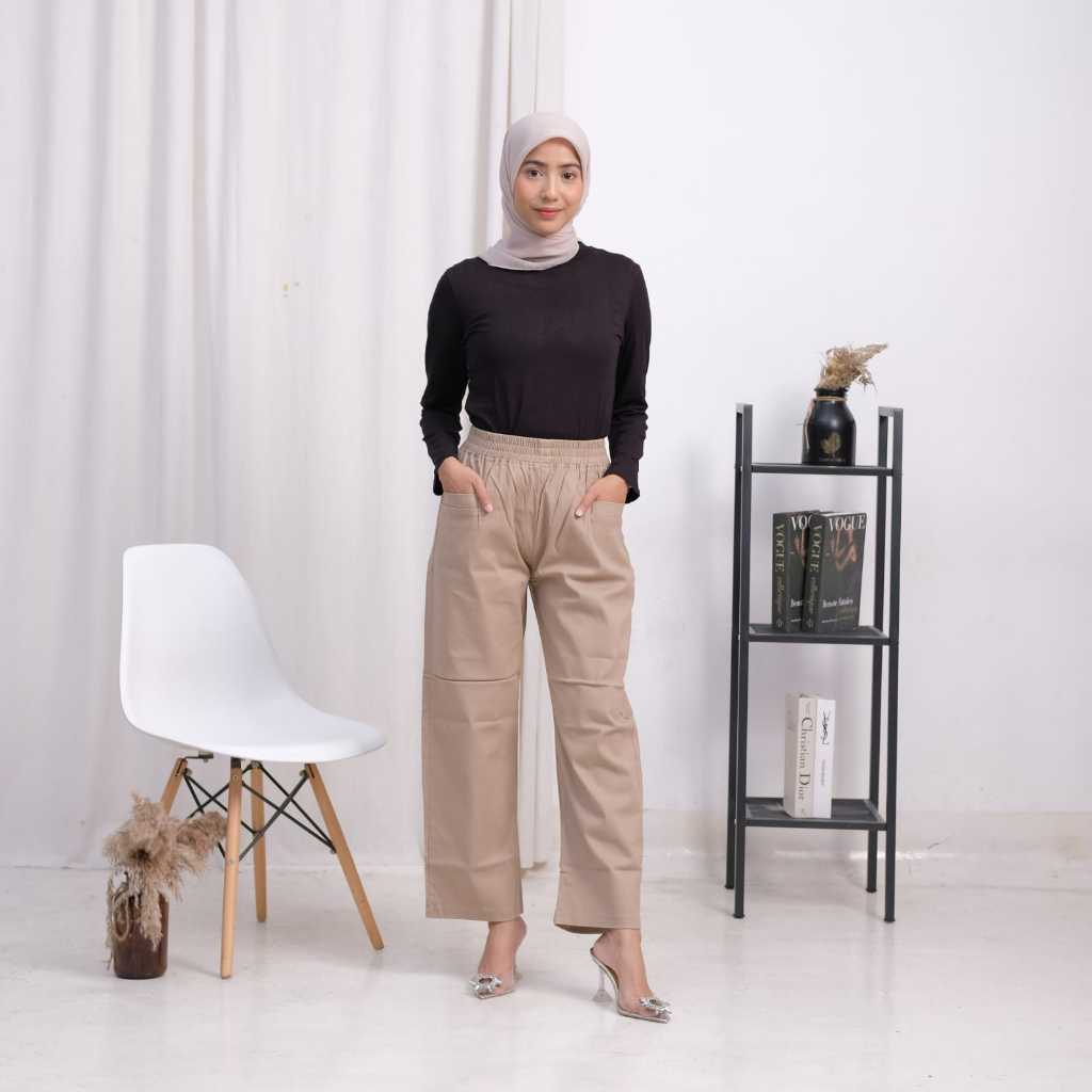 SUNS - Celana Kulot Panjang Wanita Korean Loong Pants Jumbo Bahan Katun Twill Premium Stretch Tebal Pinggang Full K