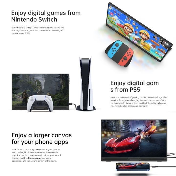 Monitor 15.6 Inch Portable Monitor/19201080p/Gaming Monitor for Switch XBOX PS4 Phone Laptop