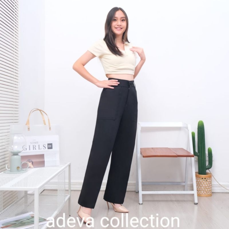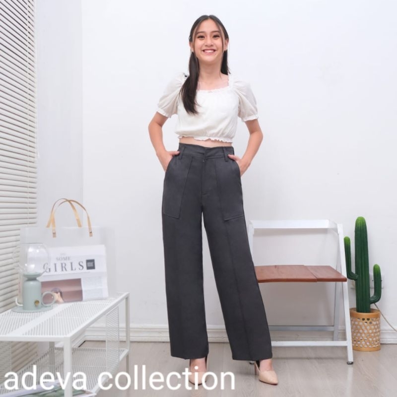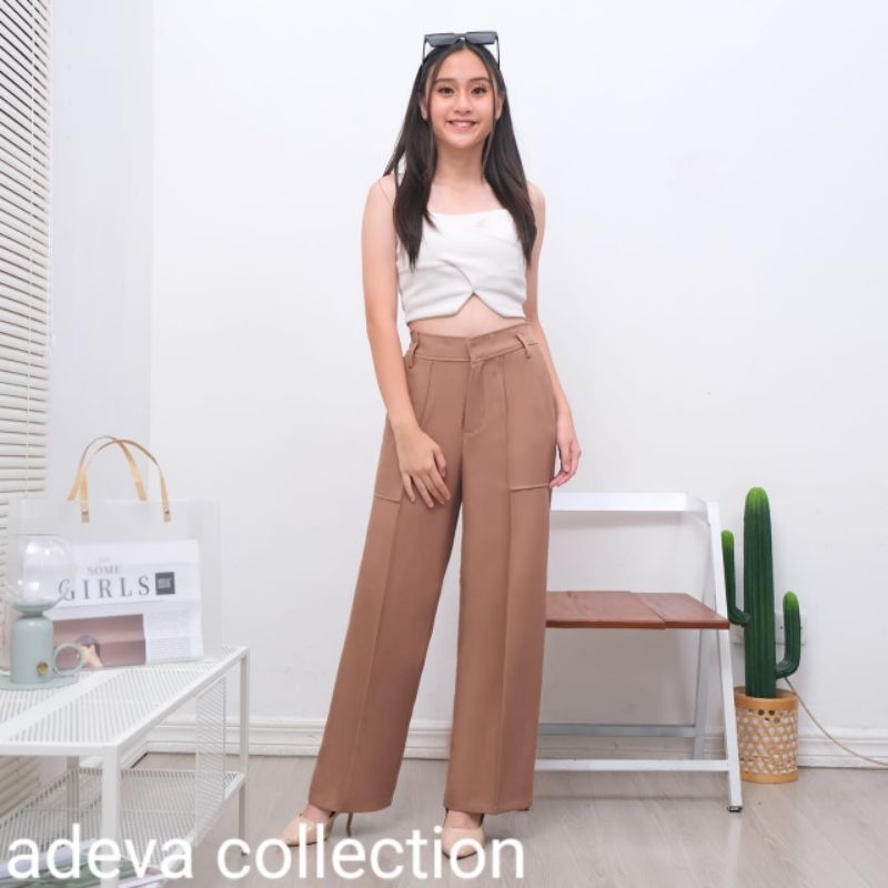 Diora Celana Kulot Highwaist Loose Pants Wanita Anti Kusut