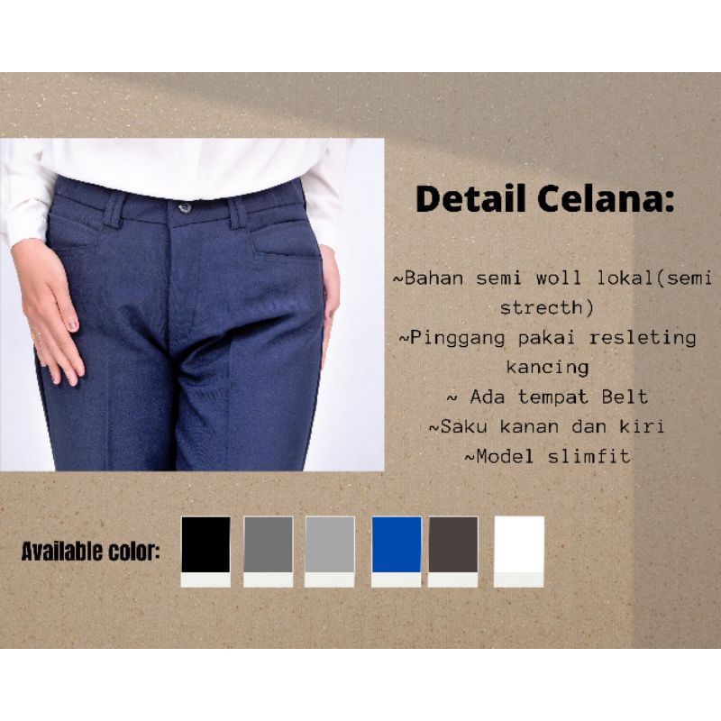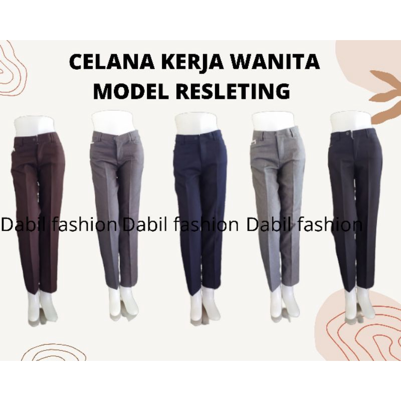 CELANA KERJA WANITA MODEL KANCING RESLETING