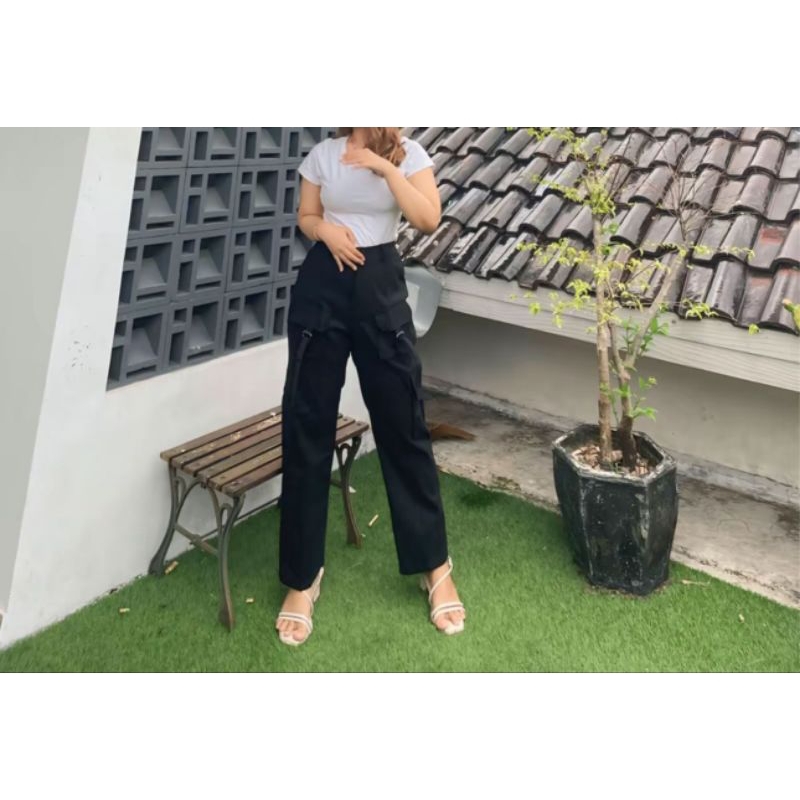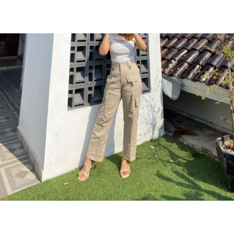 Olivia - Celana Culotte Cargo Strech Katun Twill / Kulot Cargo Wanita Highwaist Kekenian Dengan 4 Saku