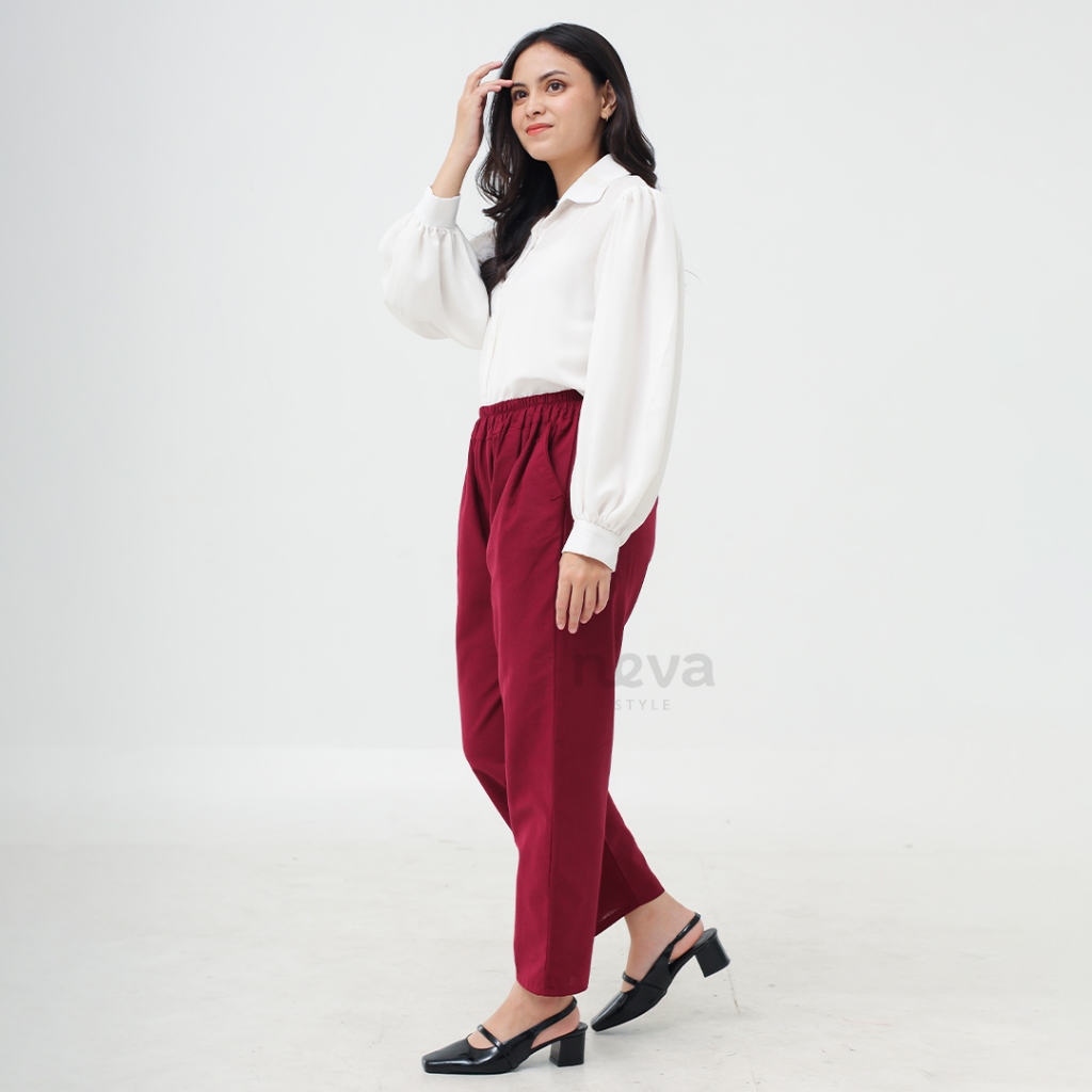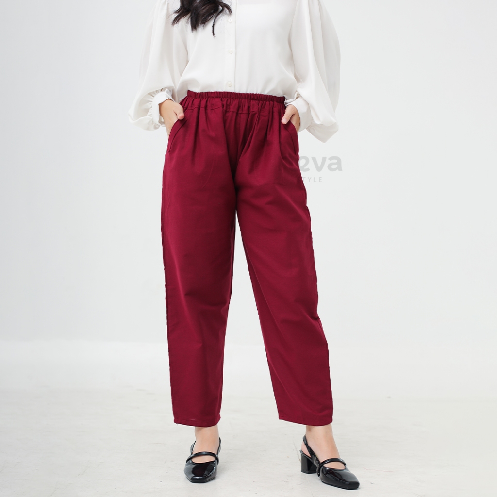 Neva Style - Celana Kulot Wanita Bloomy Baggy Pants Jumbo / Celana Harian Linen Pinggang Full Karet